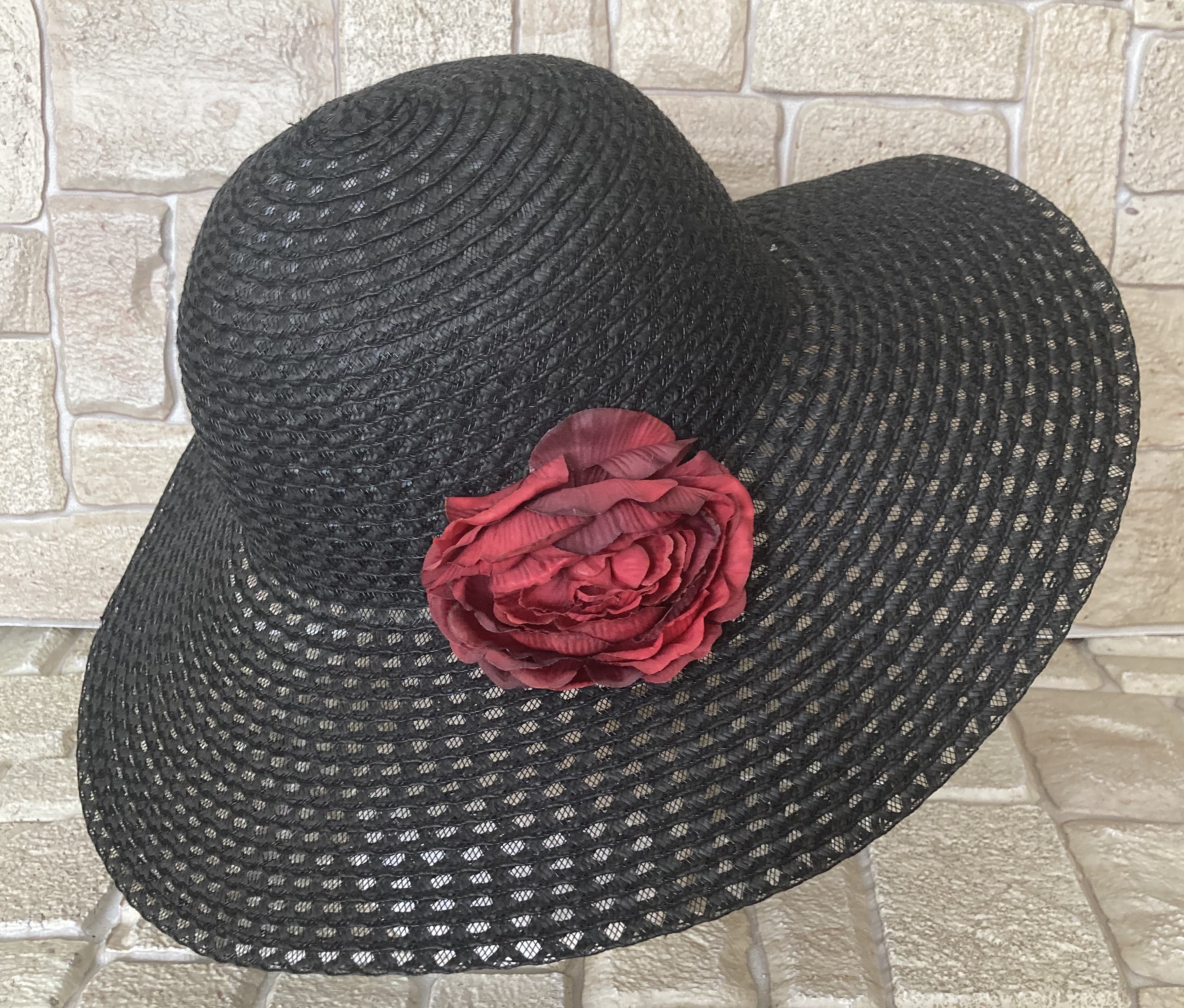Dámský letní klobouk s širokou krempou a gumičkou praktickou do větrného počasí. Nezmění tvar, když ho zmačkáte a strčíte do tašky, nebo budete chodit venku v dešti, a dokonce ani pokud Vám spadne do vody, třeba na dovolené u moře. Ozdobu lze sundat a dozdobit dle vlastního vkusu mašlí, stuhou či broží a vytvořit si tak jedinečný designový doplněk. Můžete se v něm předvádět na pláži, nebo také poslouží jako skvělý doplněk na večer k letním šatům.