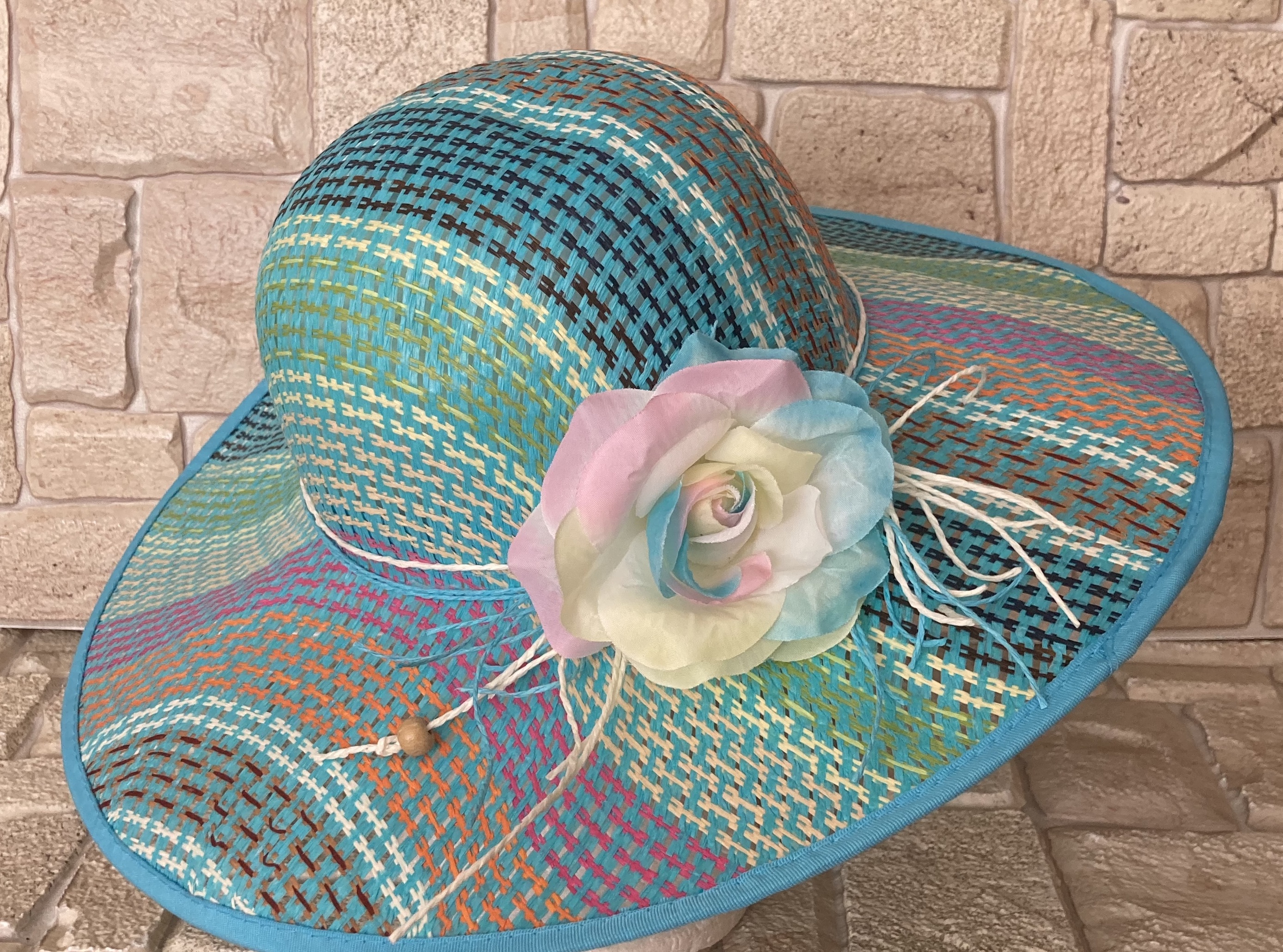 Dámský letní klobouk s širokou krempou. Nezmění tvar, když ho zmačkáte a strčíte do tašky, nebo budete chodit venku v dešti, a dokonce ani pokud Vám spadne do vody, třeba na dovolené u moře. Ozdobu lze sundat a dozdobit dle vlastního vkusu mašlí, stuhou či broží a vytvořit si tak jedinečný designový doplněk. Můžete se v něm předvádět na pláži, nebo také poslouží jako skvělý doplněk na večer k letním šatům.