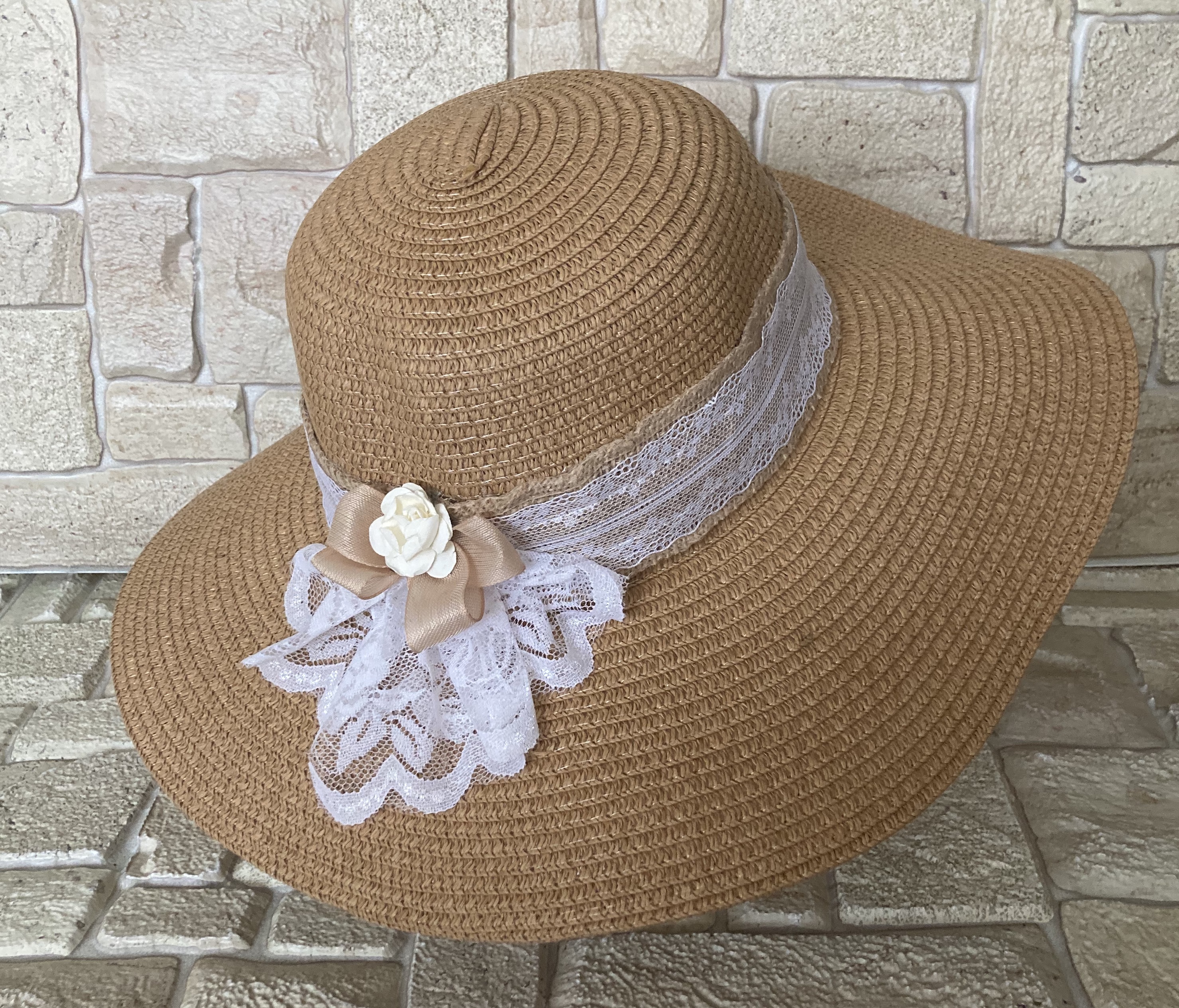 Dámský letní klobouk s širokou krempou. Uvnítř má pásek se stahovací šňůrkou pro regulaci velikosti. Nezmění tvar, když ho zmačkáte a strčíte do tašky, nebo budete chodit venku v dešti, a dokonce ani pokud Vám spadne do vody, třeba na dovolené u moře. Ozdobu lze sundat a dozdobit dle vlastního vkusu mašlí, stuhou či broží a vytvořit si tak jedinečný designový doplněk. Můžete se v něm předvádět na pláži, nebo také poslouží jako skvělý doplněk na večer k letním šatům.