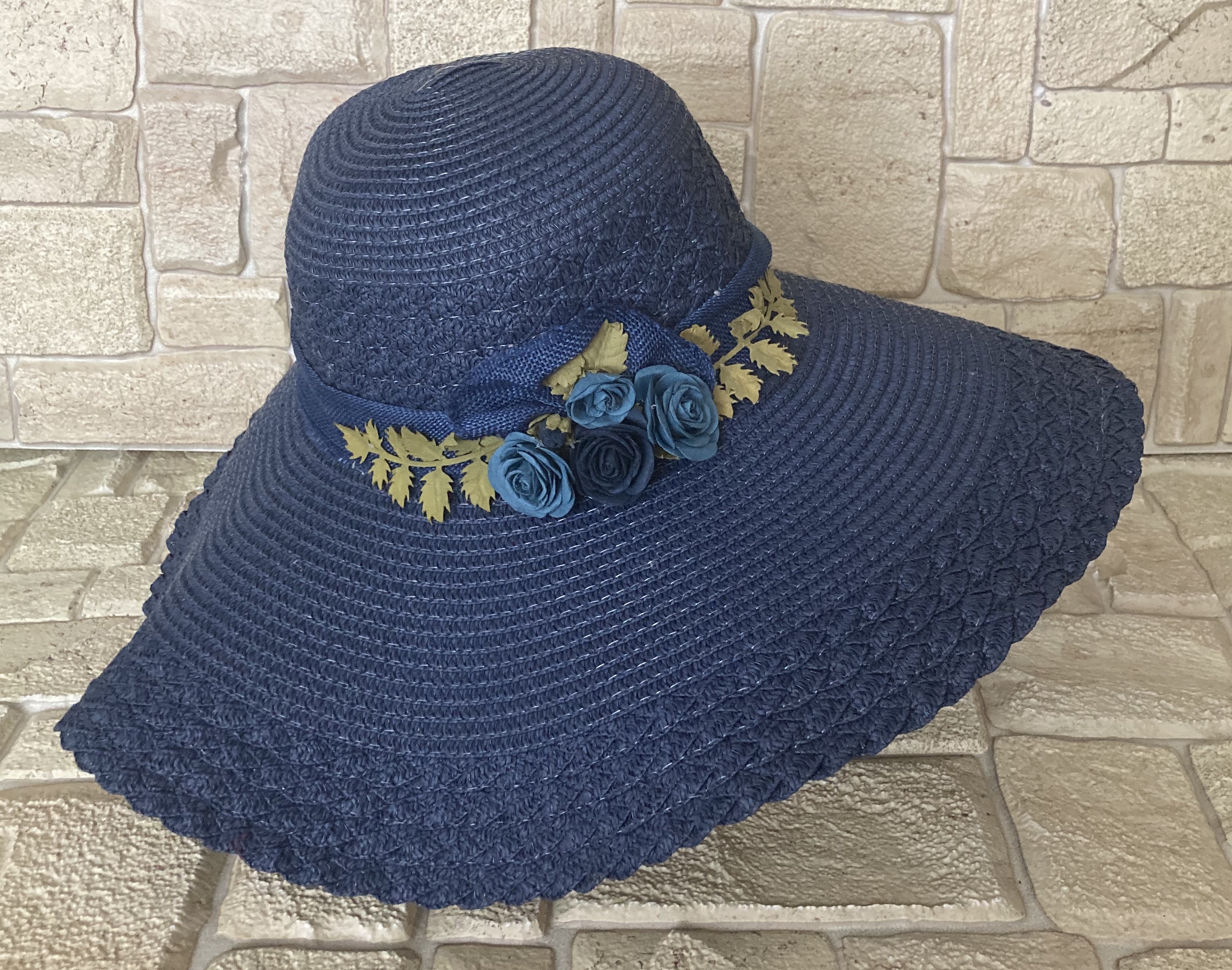 Dámský letní klobouk s širokou krempou a gumičkou praktickou do větrného počasí. Nezmění tvar, když ho zmačkáte a strčíte do tašky, nebo budete chodit venku v dešti, a dokonce ani pokud Vám spadne do vody, třeba na dovolené u moře. Ozdobu lze sundat a dozdobit dle vlastního vkusu mašlí, stuhou či broží a vytvořit si tak jedinečný designový doplněk. Můžete se v něm předvádět na pláži, nebo také poslouží jako skvělý doplněk na večer k letním šatům.