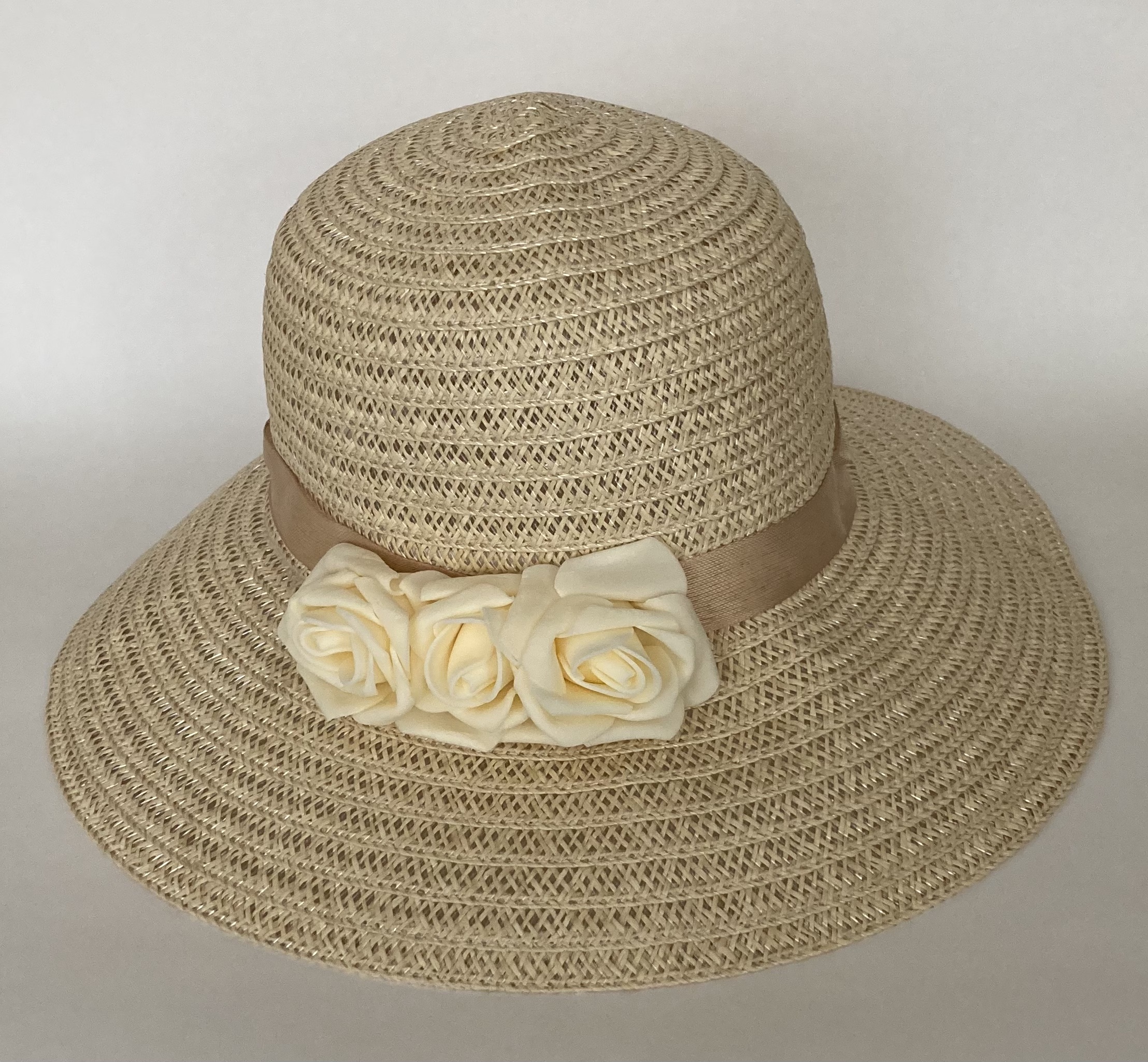 Dámský letní klobouk s úzkou krempou a gumičkou praktickou do větrného počasí. Nezmění tvar, když ho zmačkáte a strčíte do tašky, nebo budete chodit venku v dešti, a dokonce ani pokud Vám spadne do vody, třeba na dovolené u moře. Ozdobu lze sundat a dozdobit dle vlastního vkusu mašlí, stuhou či brož... celý popis