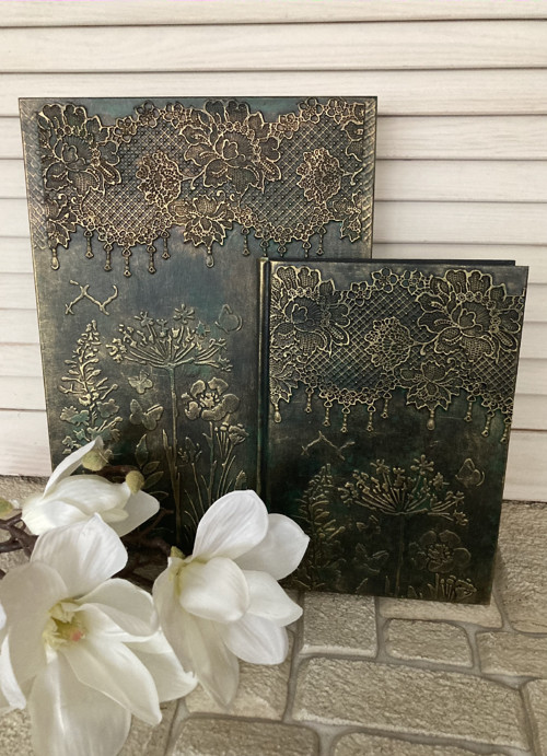 Dárková krabička se zápisníčkem vyrobené v jednom stylu. Komplet je zdoben ručně vyrobenou elastickou krajkou a technikou dekorování se starožitným efektem. Patinovaný voskem a důkladně přelakován akrylovým lakem.
