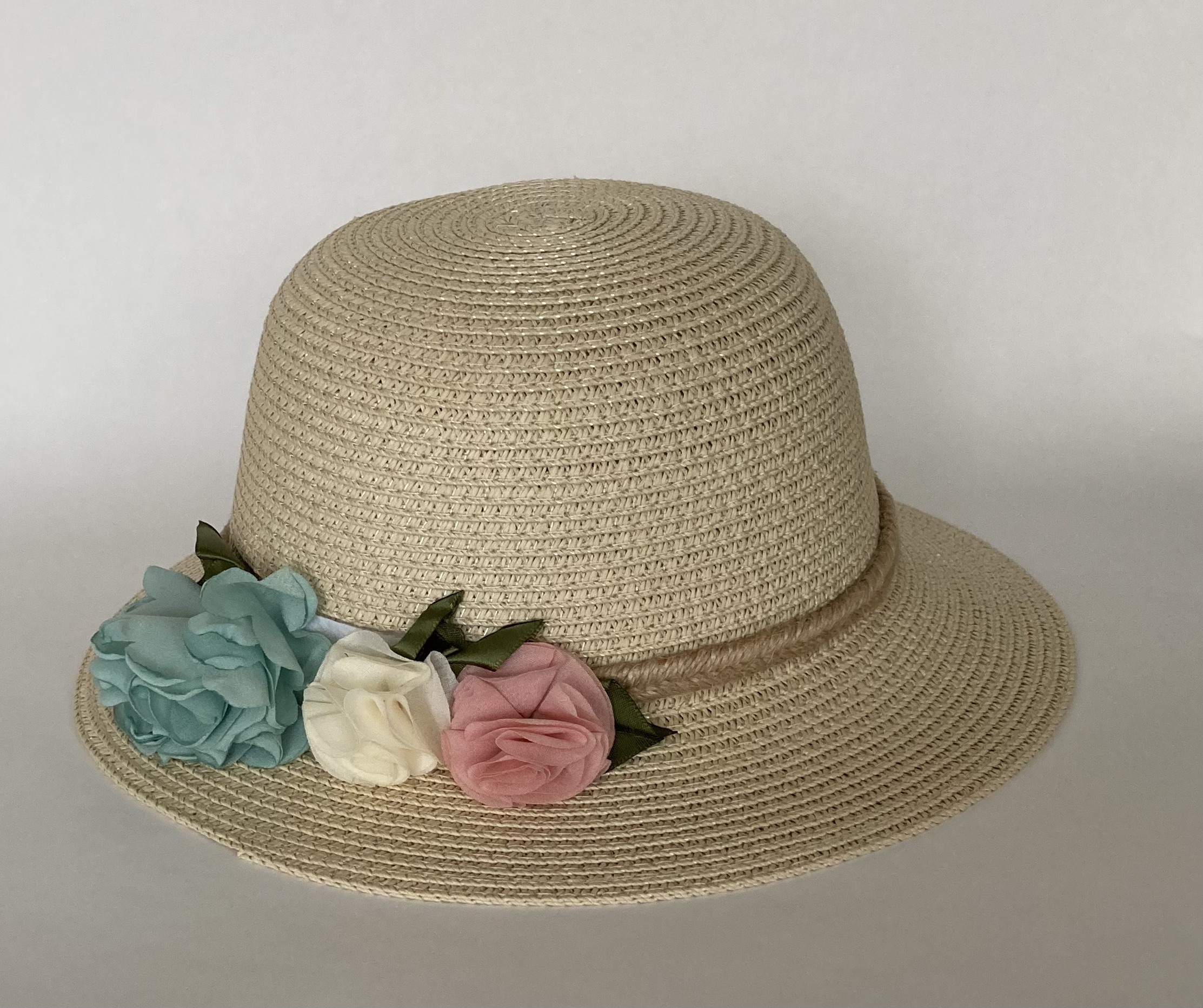 Dámský letní klobouk s úzkou krempou a gumičkou praktickou do větrného počasí. Uvnítř má pásek se stahovací šňůrkou pro regulaci velikosti. Nezmění tvar, když ho zmačkáte a strčíte do tašky, nebo budete chodit venku v dešti, a dokonce ani pokud Vám spadne do vody, třeba na dovolené u moře. Ozdobu lze sundat a dozdobit dle vlastního vkusu mašlí, stuhou či broží a vytvořit si tak jedinečný designový doplněk. Můžete se v něm předvádět na pláži, nebo také poslouží jako skvělý doplněk na večer k letním šatům.