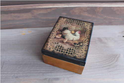 Dřevěná krabička je zdobená technikou decoupage a ručně domalovaná. Krabička je natřena akrylovými barvami a důkladně přelakována akrylovým lakem. Uvnitř je přírodní.