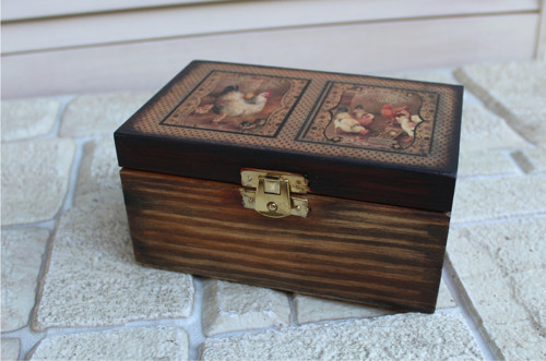 Dřevěná krabička je zdobená technikou decoupage a ručně domalovaná. Krabička je natřena akrylovými barvami a důkladně přelakována akrylovým lakem. Uvnitř je přírodní.