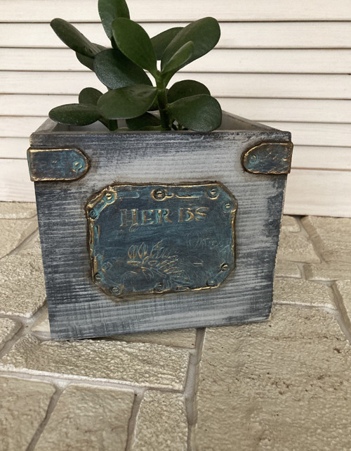 Dřevěný obal na květináč zdobený různými dekoračními technikami, včetně techniky dekorování se starožitným efektem. Keramické ozdoby na květináči jsou ručně vyrobené z kvalitní keramiky s patinováním, takže vypadají jako metalické ozdoby. Květináč je natřený akrylovými barvami, voskem a důkladně přelakován akrylovým lakem. Může sloužit jako květináč na květiny, krabice na domácí potřeby a jako zásobník na různé drobnosti. Dokonale se vejde na kuchyňské okno nebo ozdobí pokoj na venkově! Poslouží jako nádherný dárek pro ženu jakéhokoli věku a pro každou příležitost!
