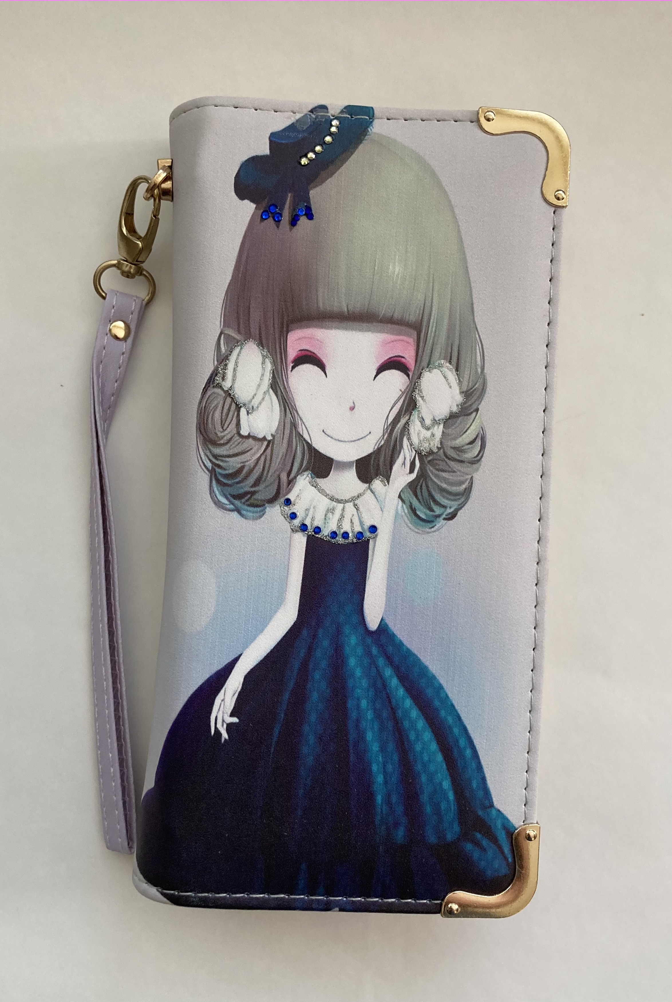 Peněženka s obrázkem mladé dívky dekorovaná kamínky a různobarevnými konturami. Velice kvalitně zpracovaná peněženka s poutkem na zápěstí a mnoha praktickými kapsami včetně kapsy na mobilní telefon a hotovost, přihrádky na osobní doklady, karty, zákaznické kartičky, vizitky a fotografie. .