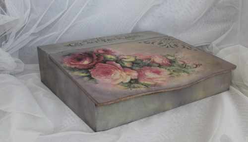 Stoleček je zdoben pomocí různých technik, hlavně technikou decoupage. Je natřen akrylovými barvami a důkladně přelakován akrylovým lakem nejvyšší kvality.