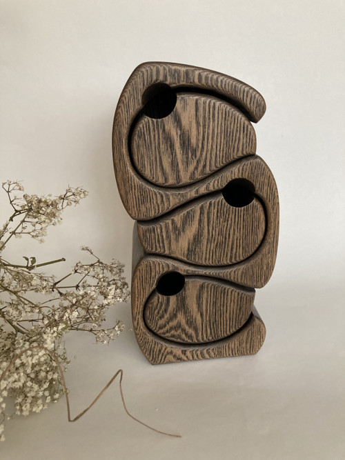 Šperkovnice Kobra je jedinečná, ručně vyrobená z různých drahých typů dřeva, jasanů. Obsahuje 2 šuplíky. Zpracovaná vysoce kvalitním, odolným a absolutně ekologickým nátěrem. Šperkovnice velmi dobře zapadne do interiéru obývacího pokoje každé domácnosti. Originální a nevšední tip na dárek pro milovanou osobu k narozeninám, dárek pro maminku, přítelkyni či na svatbu nebo výročí. Při ukládání šperků do šperkovnice dochází k jejich čištění od negativní energie, zvláště pokud je nosíte denně. Přírodní dřevo má léčivé čistící vlastnosti a naplňuje atmosféru úžasnou lehkostí a dává vám živé teplo.