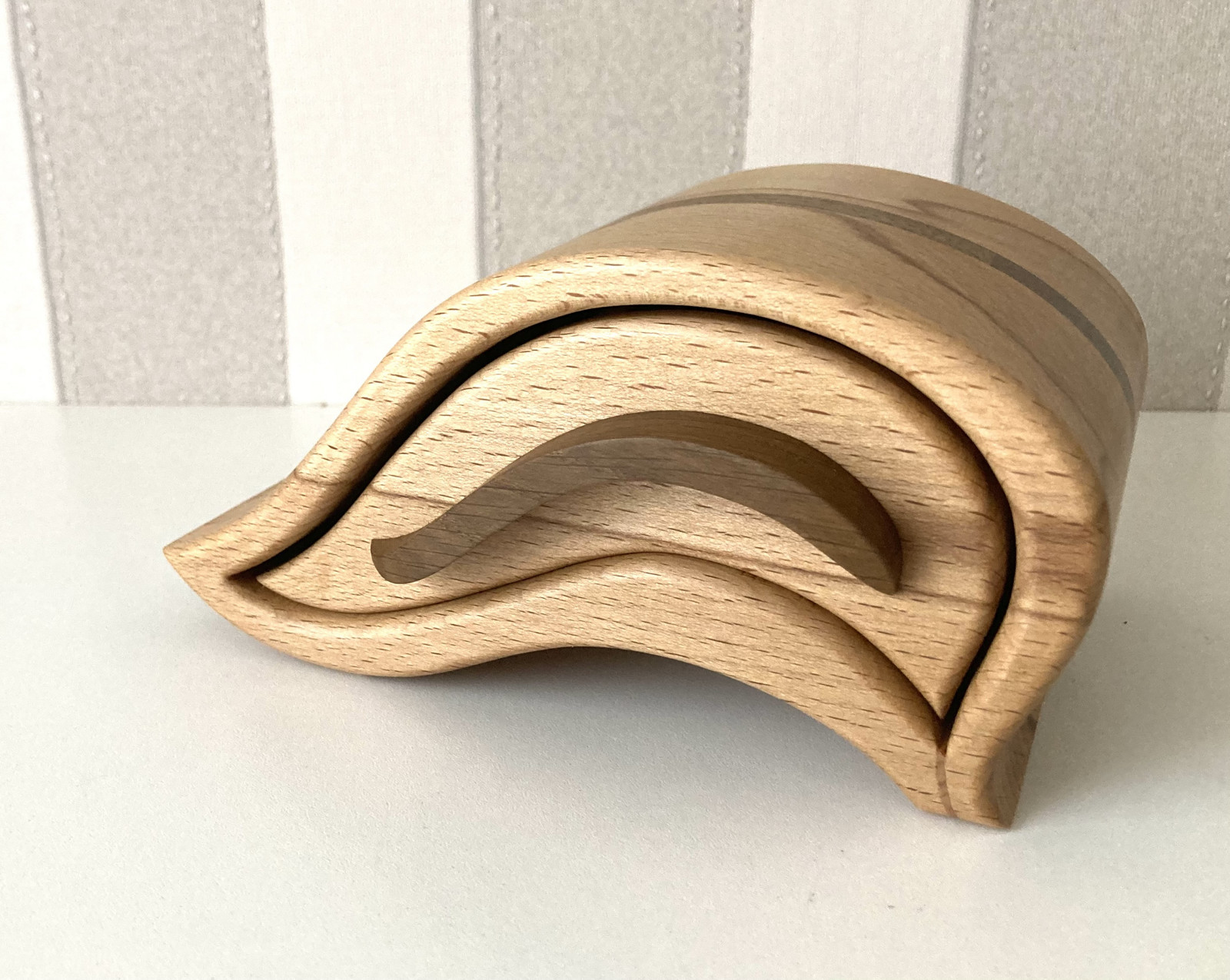 Šperkovnice Kapka je jedinečná, vyrobená z různých typů dřeva: lipové dřevo a javor.