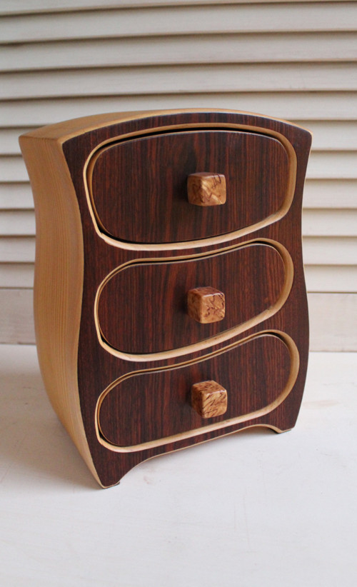 Šperkovnice skříň je jedinečná, vyrobená z různých typů dřeva: lipové dřevo a javor.Obsahuje 3 šuplíky, které jsou uvnitř polepené velurovou látkou hnědé barvy. Zpracovaná vysoce kvalitním, odolným a absolutně ekologickým nátěrem. Šperkovnice velmi dobře zapadne do interiéru obývacího pokoje každé domácnosti. Originální a nevšední tip na dárek pro milovanou osobu k narozeninám, dárek pro maminku, přítelkyni či na svatbu nebo výročí. Při ukládání šperků do šperkovnice dochází k jejich čištění od negativní energie, zvláště pokud je nosíte denně. Přírodní dřevo má léčivé čistící vlastnosti a naplňuje atmosféru úžasnou lehkostí a dává vám živé teplo. Šperkovnice vyžaduje lásku a pečlivou péči. Otírejte suchým nebo vlhkým hadříkem.