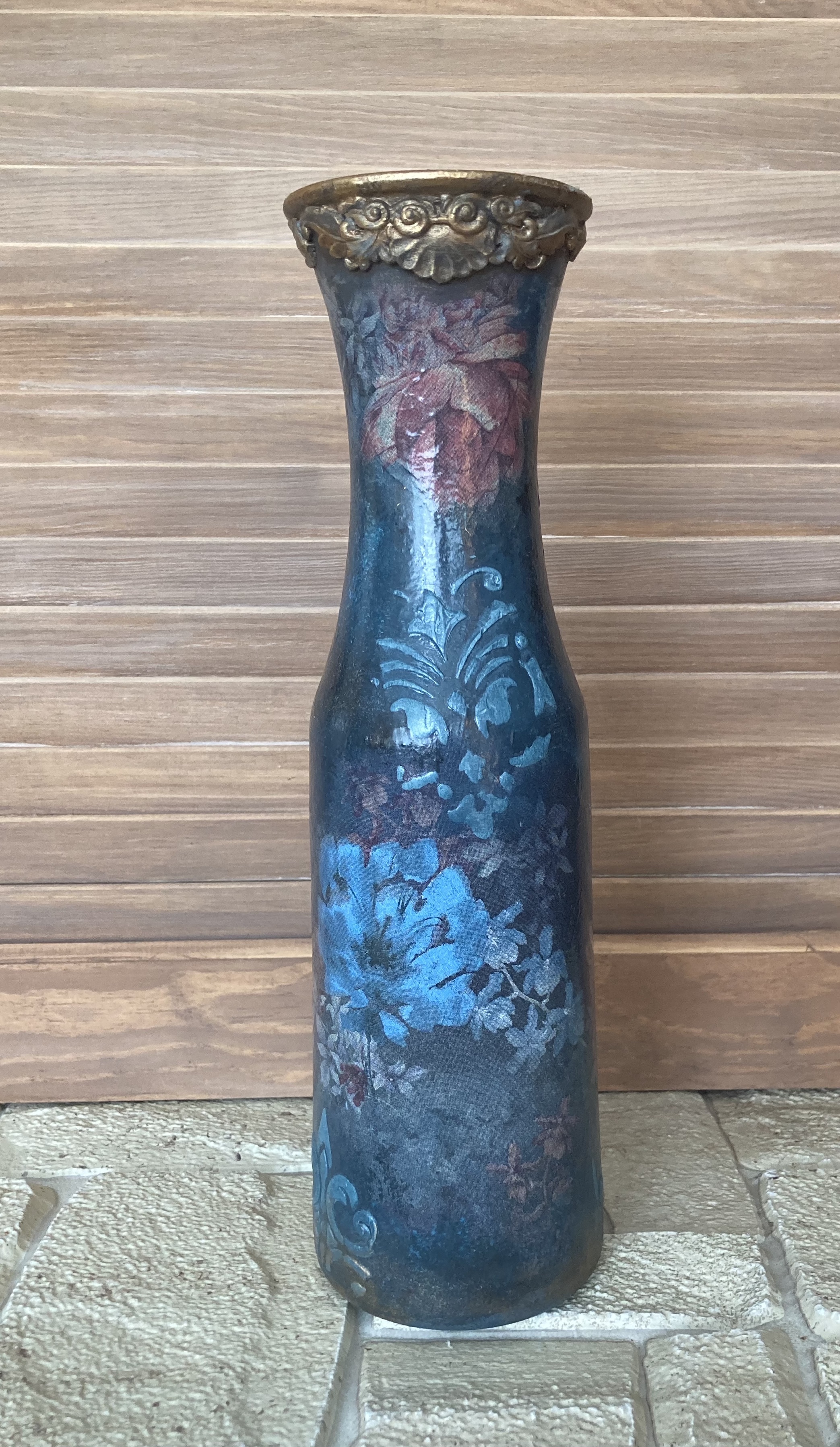 Skleněná váza dekorovaná speciálními technikami, včetně náročné techniky decoupage na sklo s následným ručním domalováním. Uvnitř váza zůstala skleněná.
