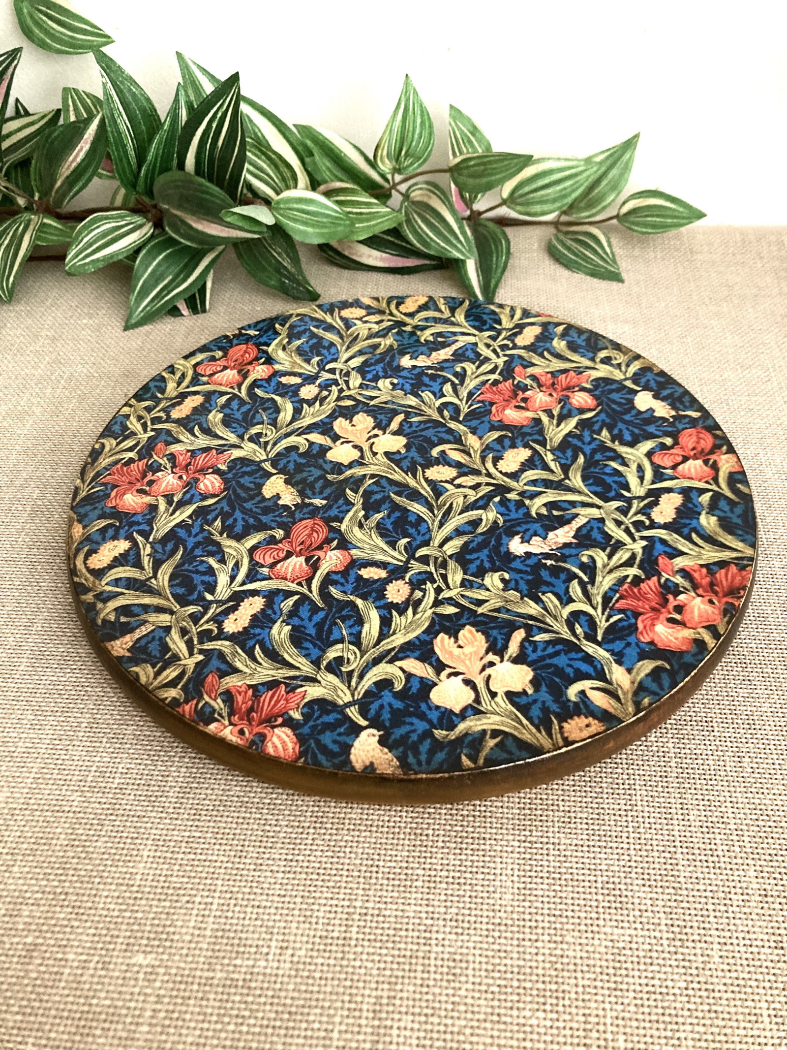 Dřevěné prkénko je nezbytným pomocníkem v kuchyni. Díky svému originálnímu designu je výborným doplňkem při servírování či na párty. Dřevěné prkénko o průměru 22 сm a tloušťce 1,5 cm. Je vyrobeno z prvotřídního bukového dřeva, ozdobeno technikou decoupage. Obrázek je nesmyvatelný.