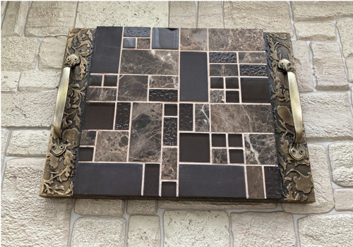 Dřevěný servírovací tác, podnos, podložka o velikosti 40 x 30 x 3 cm. Je vyrobený ze smrkového dřeva a dekorativní keramické dlaždice. Je na nožičkách. Podnos má úchyty pro snadnější uchopení. Na podnos lze položit jakékoliv horké předměty. Z ohně můžete klidně dát konvici s vařící vodou nebo pánev.