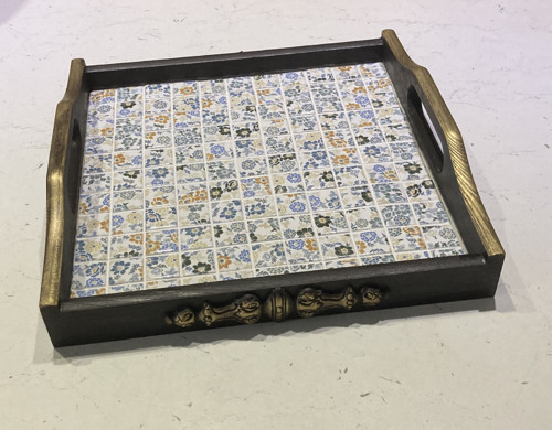 Dřevěný podnos, tác o velikosti 24 x 25 x 5 cm. Je vyrobený ze smrkového dřeva a dekorativní keramické dlaždice. Podnos má po stranách úchyty pro snadnější uchopení. Na podnos lze položit jakékoliv horké předměty.