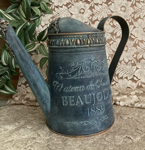 Plechová konev je vyrobená z galvanizované oceli, která poskytuje kvalitní ochranu proti korozi. Je zdobená technikou dekorování se starožitným efektem, ručně vyrobenou elastickou krajkou, je natřená akrylovými barvami, patinovaná a důkladně přelakovaná kvalitním akrylovým lakem. Kombinace zlaté a tyrkisové patiny dodává konvici zvláštní něžnost a lehkost. Konev je vhodná jak na zalévání, tak i na suché květiny. Můžete ji použít jako doplněk do bytu. Konev může ozdobit váš domov, vnést do něj teplo a pohodlí, lásku a romantiku. Bude to originální dárek a nádherná dekorace do interiéru vašeho domova, bytu či letní chaty.