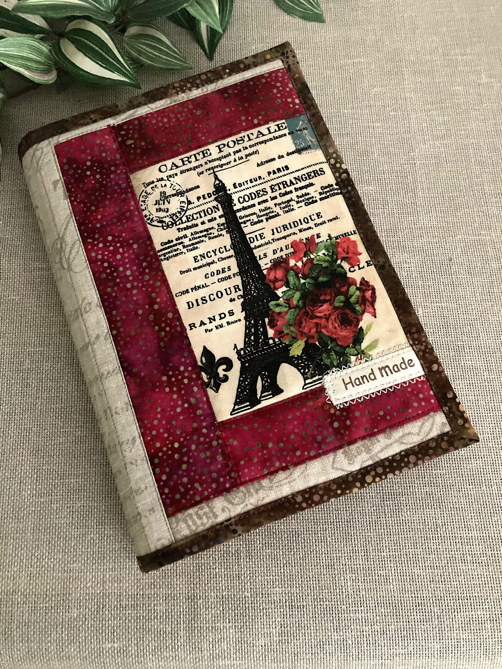 Stylový, měkký látkový obal , který může proměnit jakýkoli váš standardní denní zápisník nebo Váší knihu, a dát jim jedinečný styl a osobnost. Je vhodný i pro objemnější knihy a pro výšku knih do 23 cm. Je to zamýšleno tak, že ohýbací část slouží jako záložka do knihy. Je tedy možné vložit tuto ohýbací část dovnitř mezi stránky rozečtené knihy a knihu zavřít.Obal je vyrobeny technikou patchwork z odolné bavlněné kvalitní zahraniční látky. Všechno je pečlivě prošité a vyztužené, žádné zbytečné detaily a otevřené švy. V případě potřeby lze prát, nejlépe jemnými prostředky, v teplé vodě, osušit ručníkem, sušit v narovnaném stavu,v případě potřeby žehlit žehličkou na teplotu pro bavlnu.