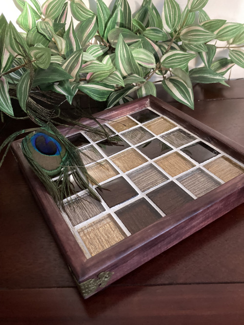 Dřevěný tácek je vyrobený z bukového dřeva a dekorativní keramické dlaždice ve velikosti 20 x 20 cm ,výška 2,5 cm, dno sololit deska, .