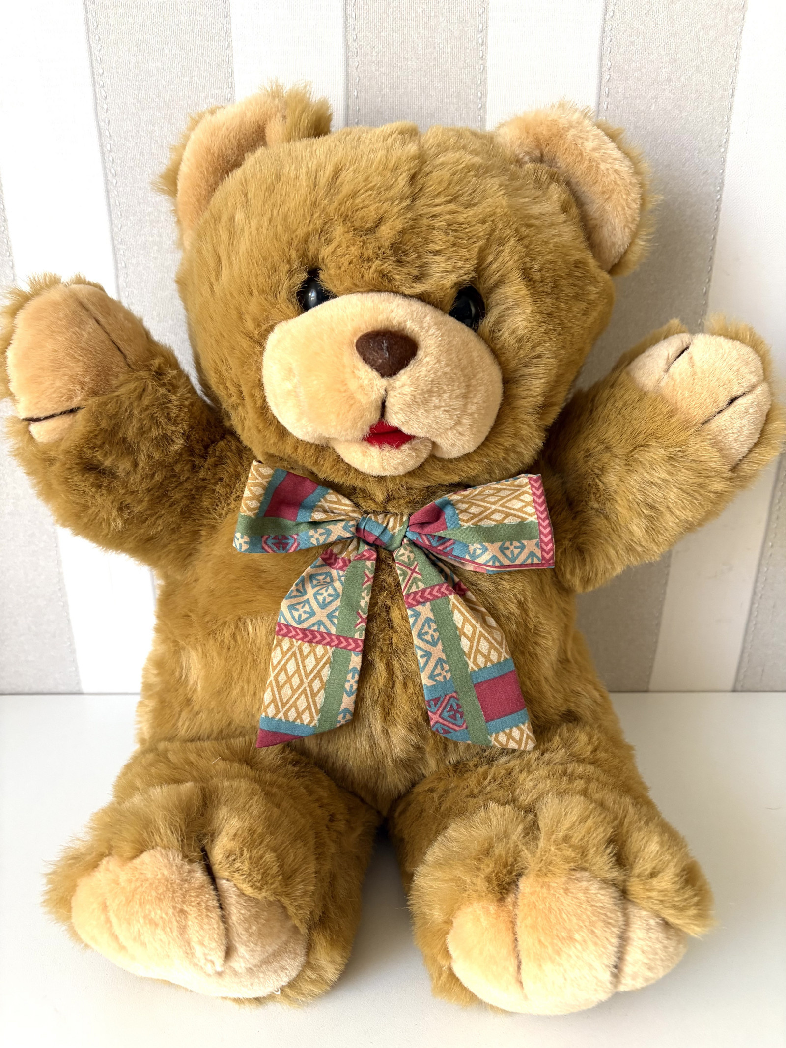 Tento vintage jemný plyšový medvídek je okouzlující hnědý plyšák o velikosti 60 cm s klasickou kostkovanou mašlí. Je ideální pro sběratele nebo jako jedinečný dárek pro starší dítě. Tento středně velký medvídek vyzařuje nostalgii a něžnost. Vysoce kvalitní řemeslné zpracování a nadčasový design z něj činí výjimečný doplněk do každé sbírky nebo domacnosti.