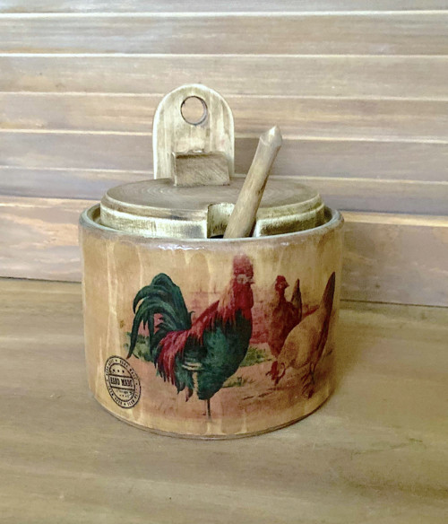 Slánka dřevěná krabička na sůl nebo bobkový list ve provence provedení. Je zdobená technikou decoupage. Krabička je natřena akrylovými barvami a důkladně přelakována akrylovým lakem. Uvnitř je přírodní.